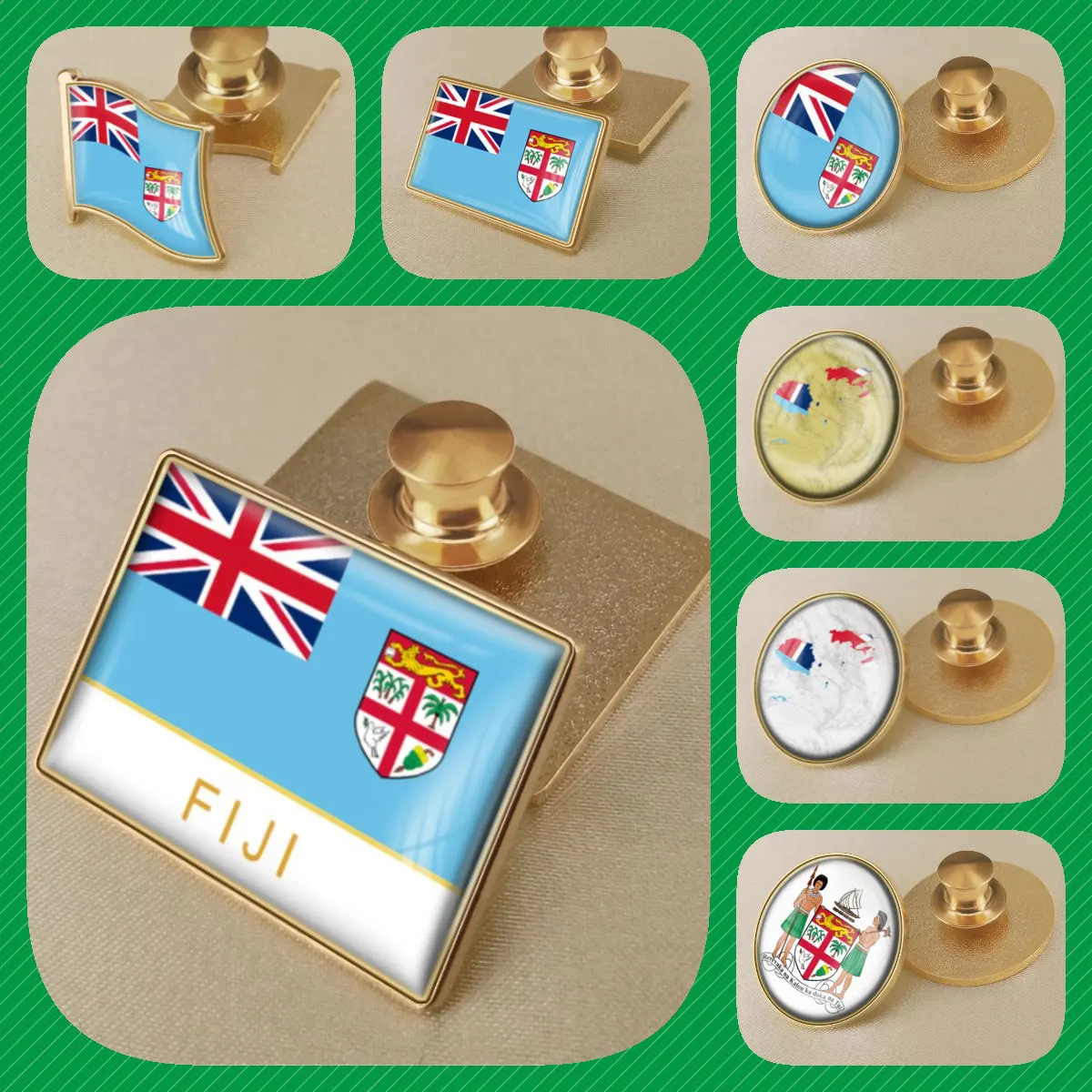 Fiji Fijians Map Flag National Emblem National Flower Brooches