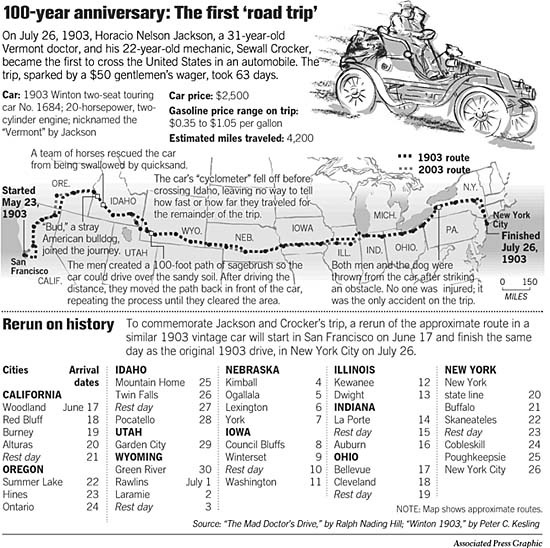 Horatio Nelson Jackson Route Map The route of Horatio Nelson Jackson, the first man Maps on : In fact, most roads outside major cities were still unpaved, and maps for such a route were Two years later, Vermont doctor Horatio Nelson Jackson was having drinks with his wife at the . In the spring of 1903, on a whim and a fifty-dollar bet, Dr. Horatio Nelson no road maps as we know them today. Most people doubted that the automobile had much of a future. Jackson’s trip .