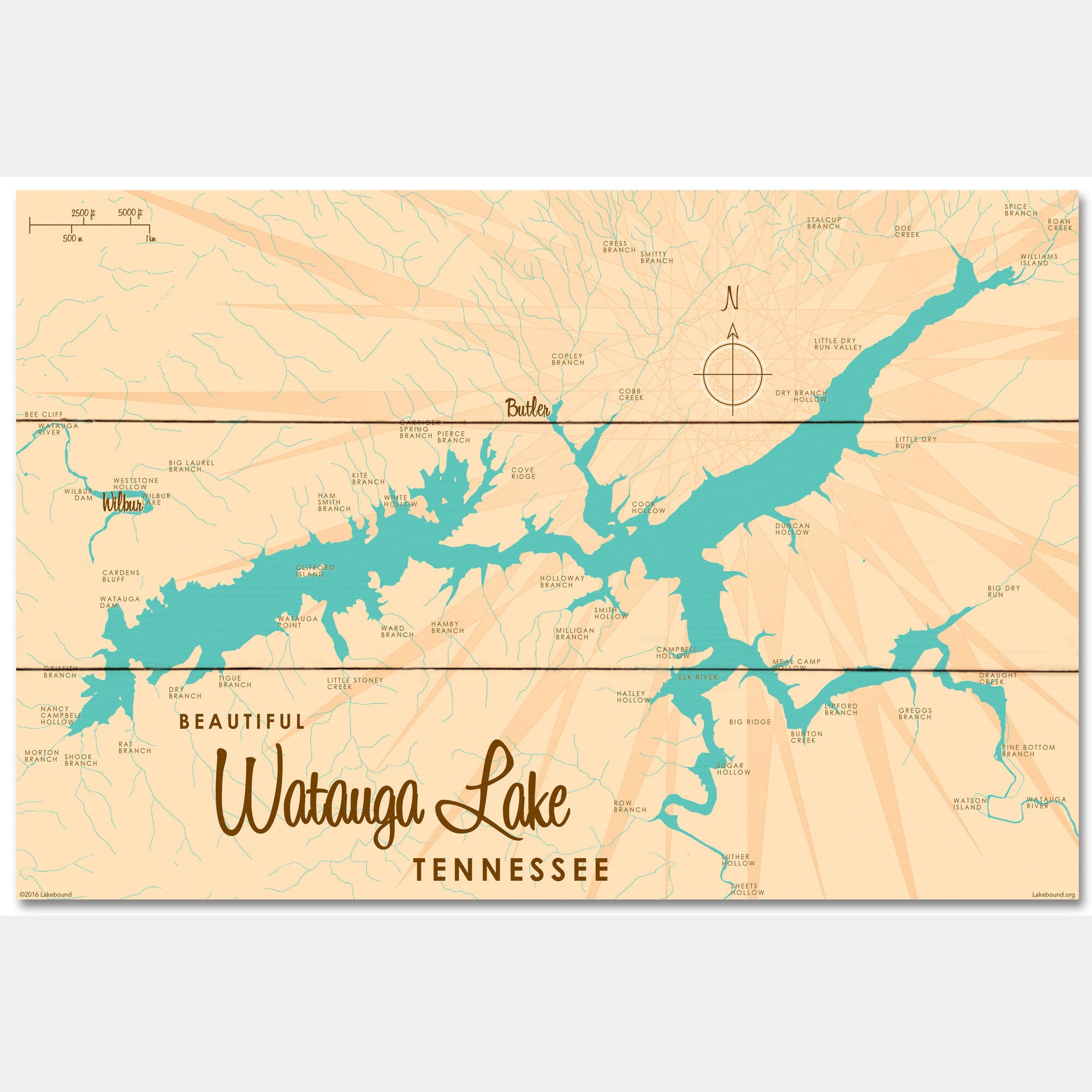 Watauga Lake Tennessee, Wood Sign Map Art – Lakebound®