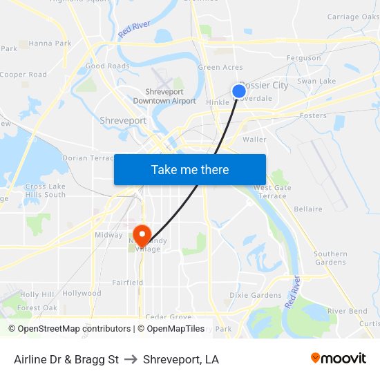 Airline Dr & Bragg St to Shreveport, LA with public transportation