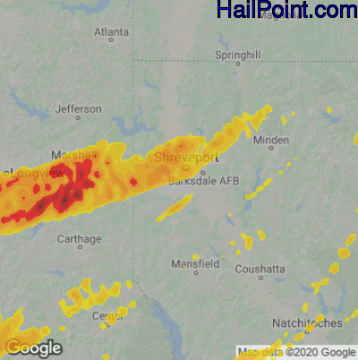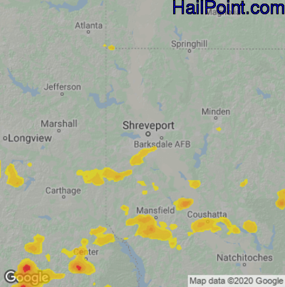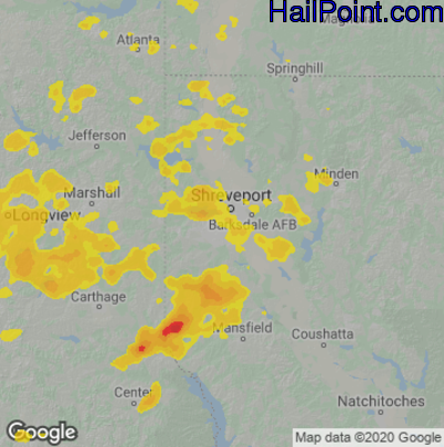 Hail Map for Shreveport, LA Region on June 3, 2024