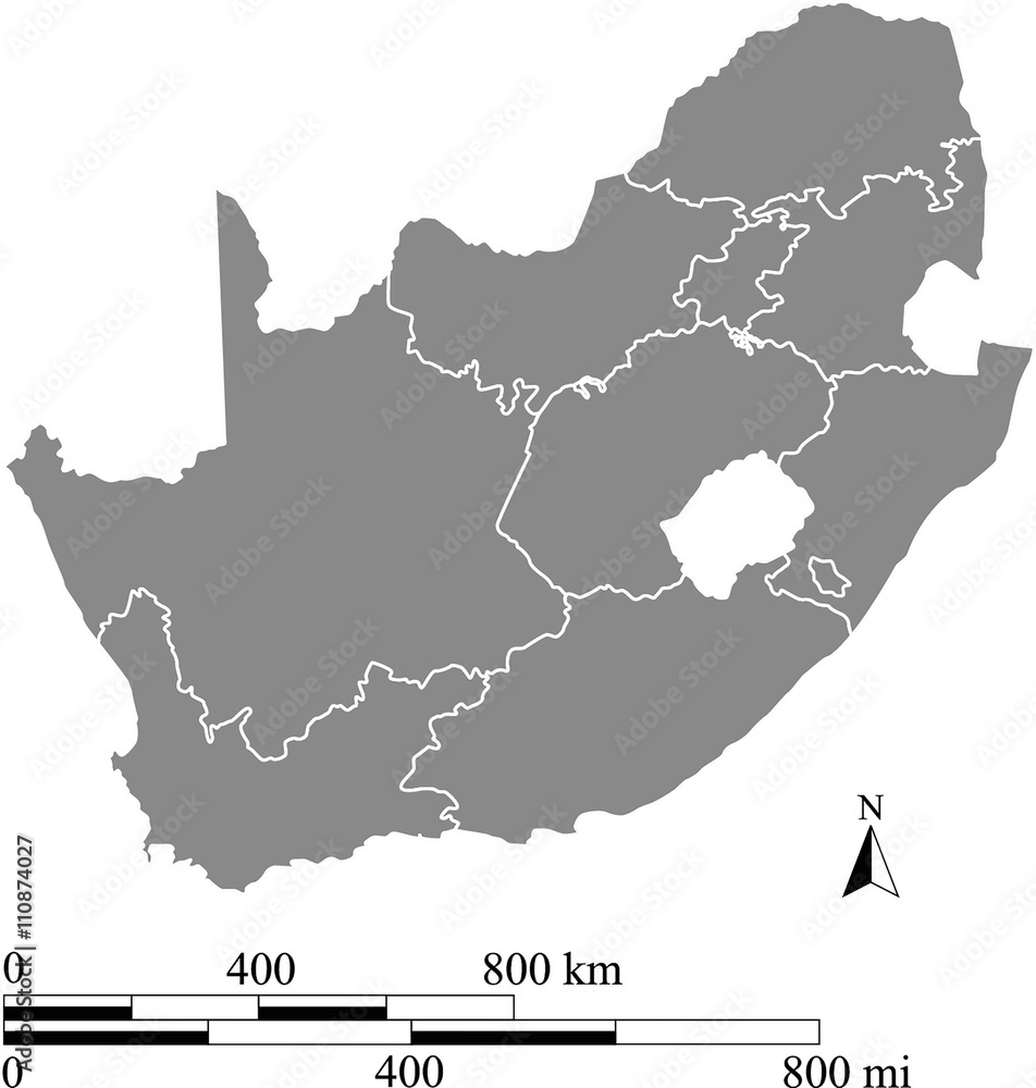 South Africa Map Vector Outline Scales Stock Vector (Royalty Free